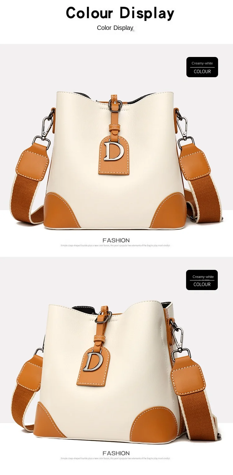 Retro Casual Bucket Bag with Wide Shoulder Retro Casual Handbag