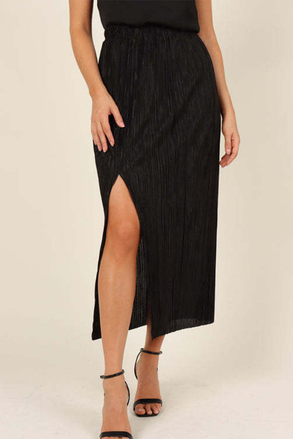 Slit Sexy Slimming Casual Mid Waist Pack Hip Mid Skirt