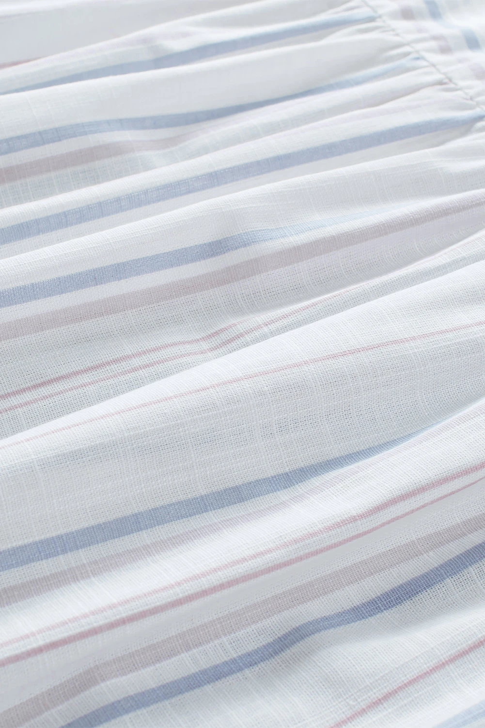 Striped Print Loose Fit V Neck Short Sleeve Blouse